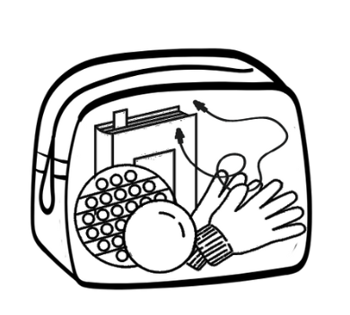 This could also include comfort items, fidget items, or something that helps you calm down, like a book or game.